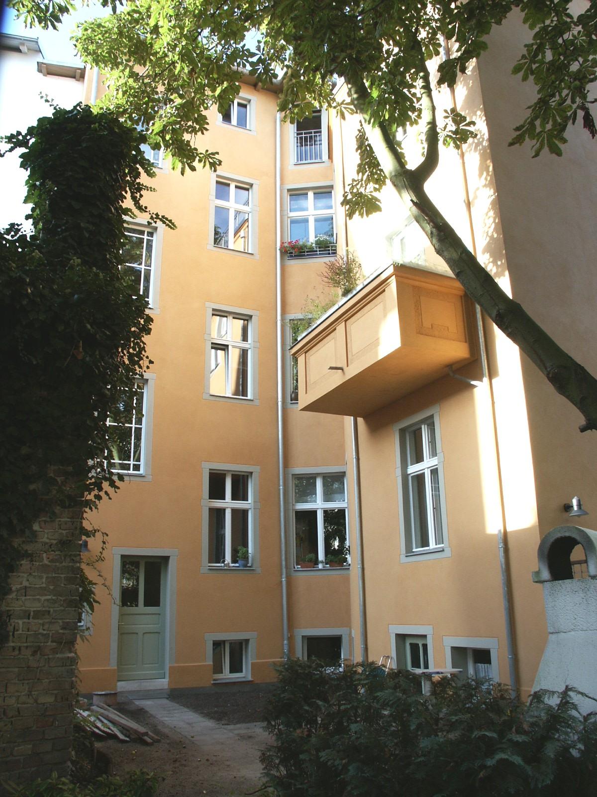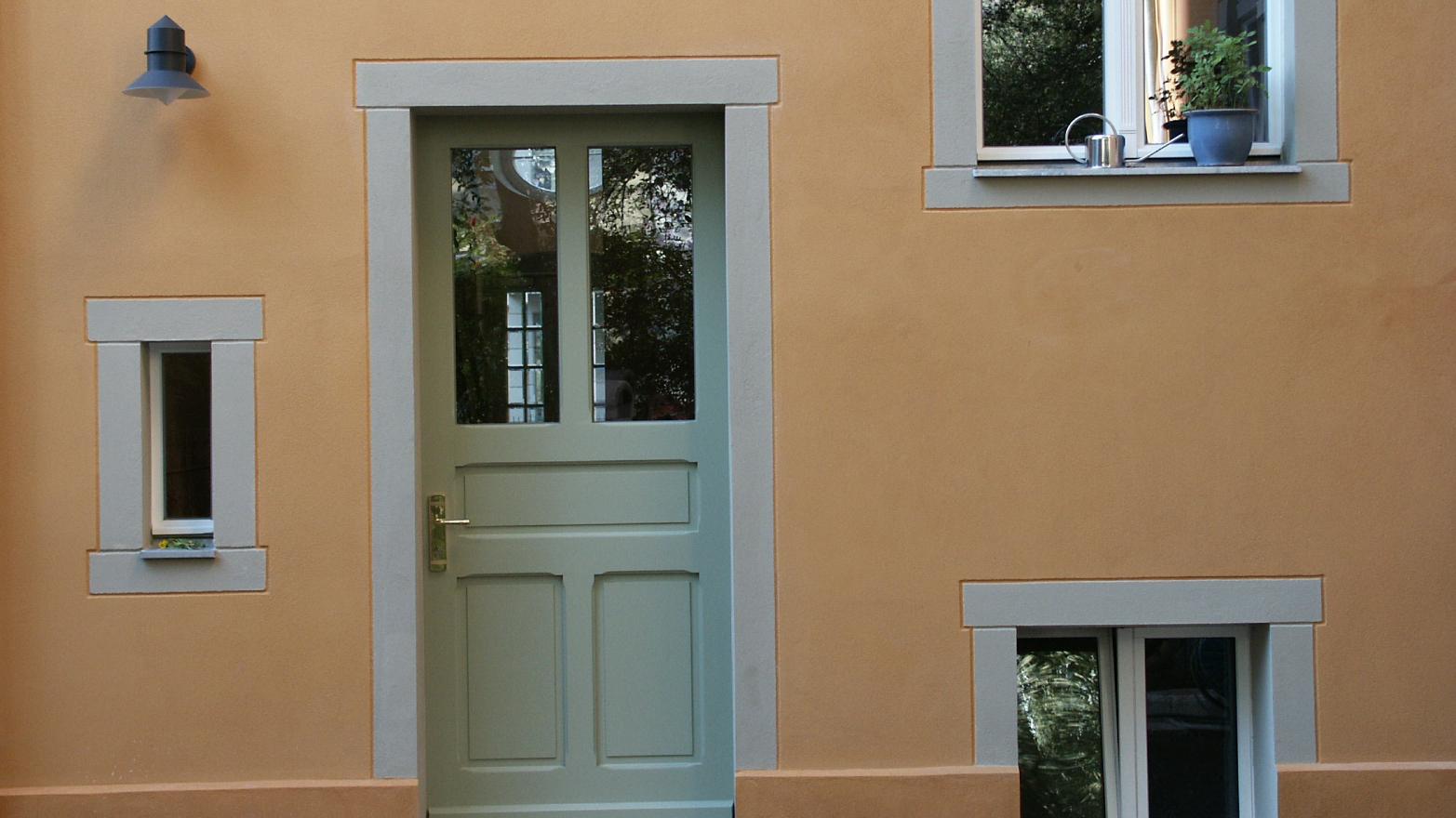 Liebevolle Sanierung eines Gründerzeithauses von 1904 durch Instandsetzung bzw. Wiederherstellung von Details der Fassade und im Treppenhaus.