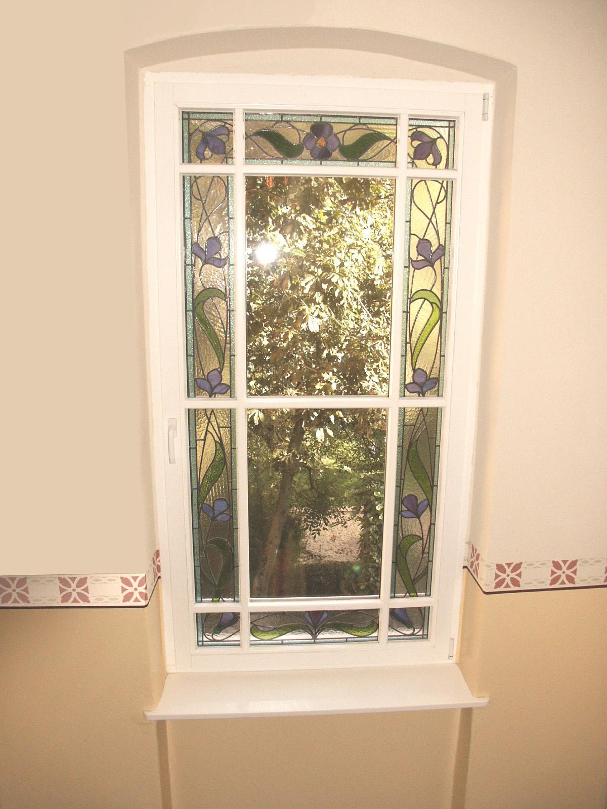 Erneuerung der Treppenhausfenster als Isolierglasfenster unter Wiederverwendung der alten Bleiverglasungen (Einbau in den Scheibenzwischenraum);