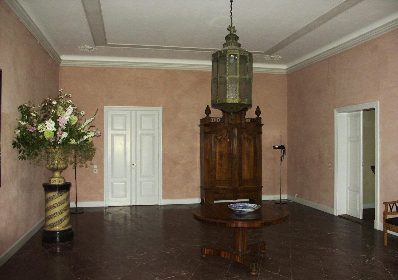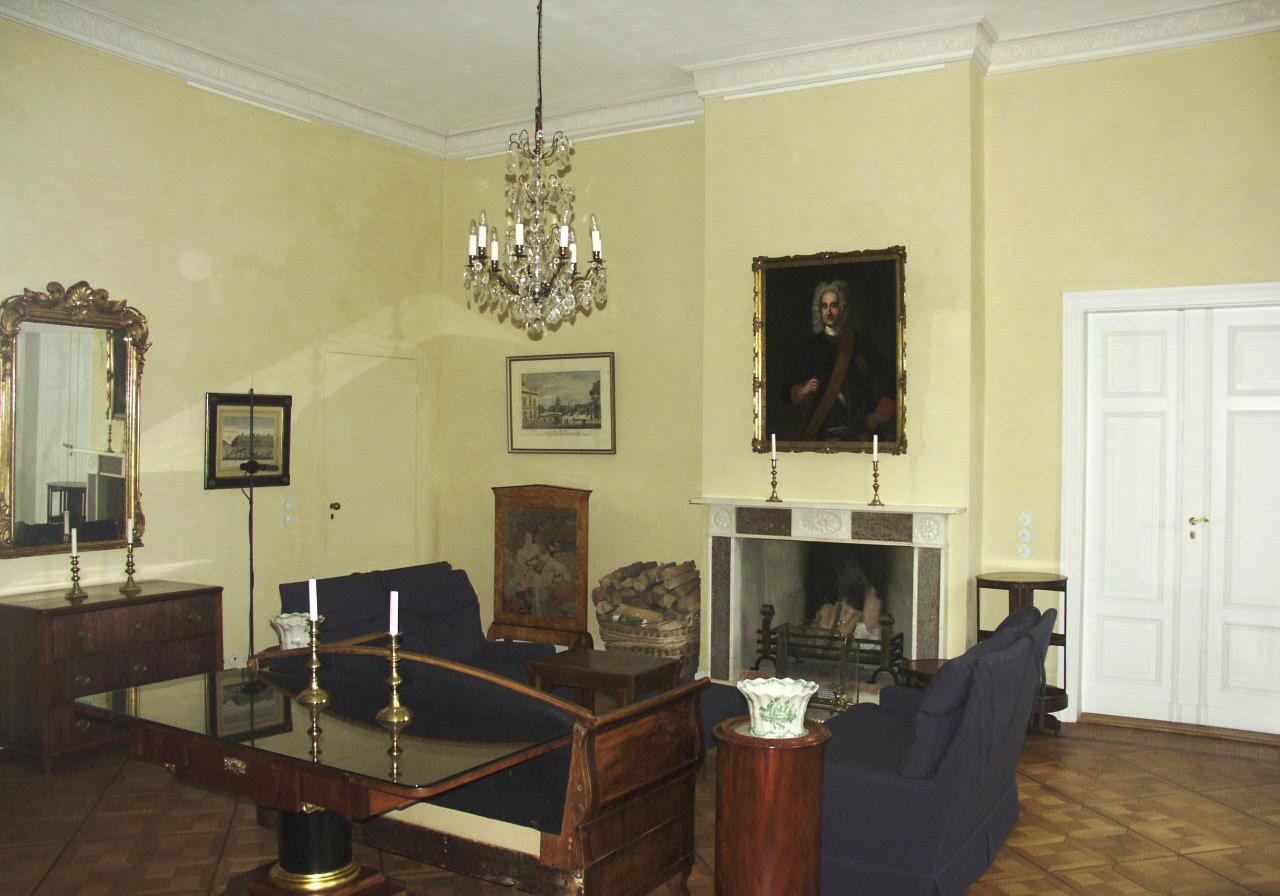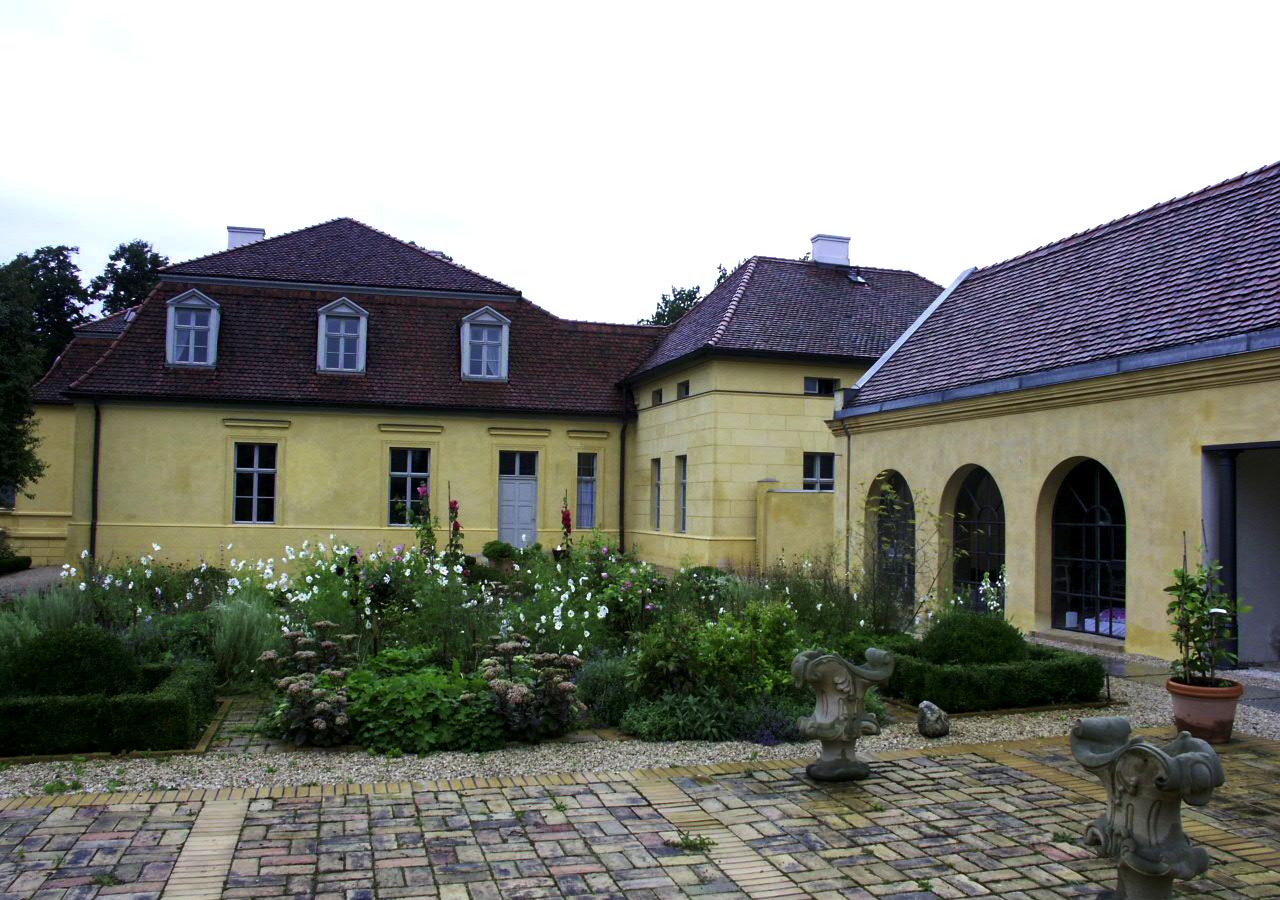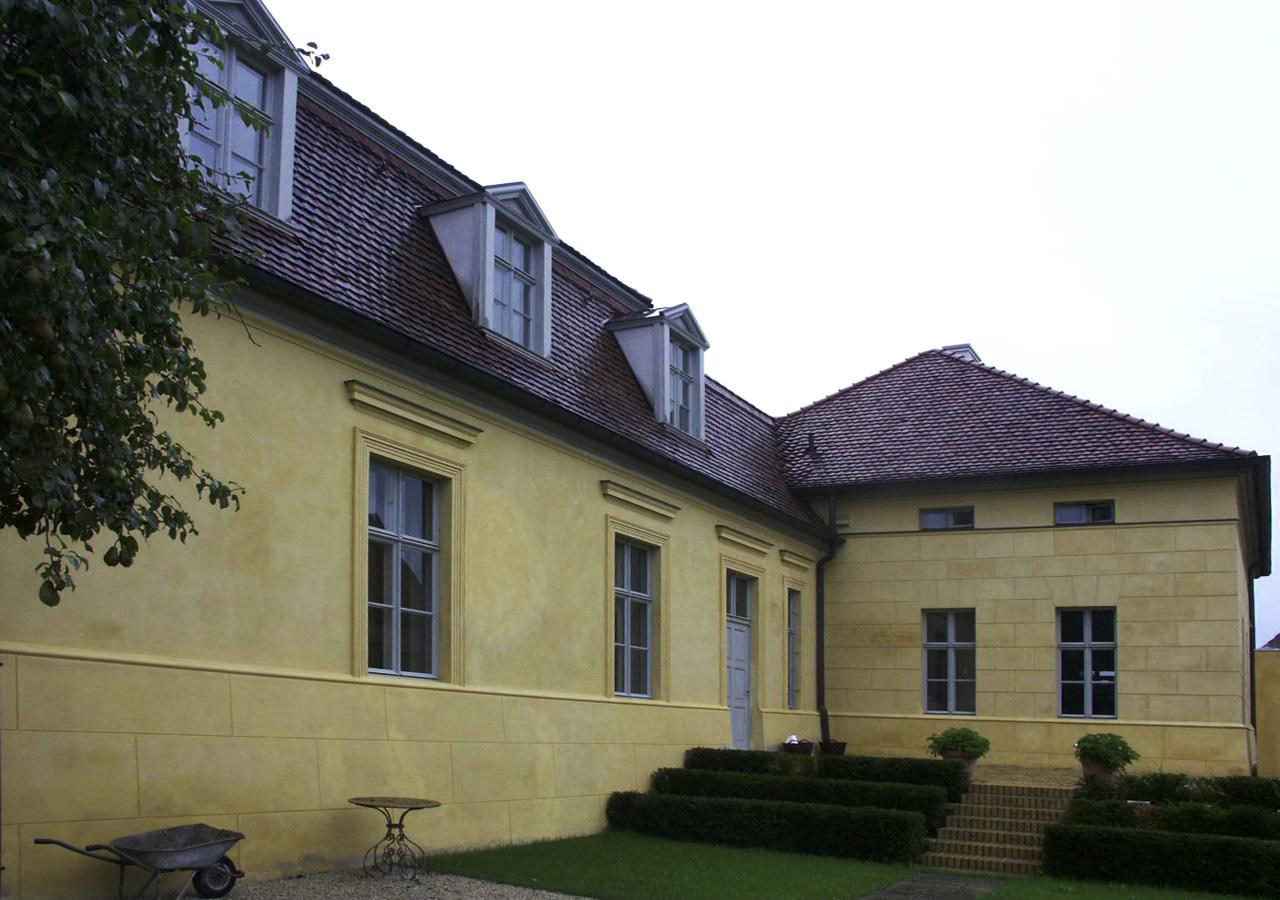 1723 als Dreiflügelanlage erbaut und 1858 klassizistisch überformt;