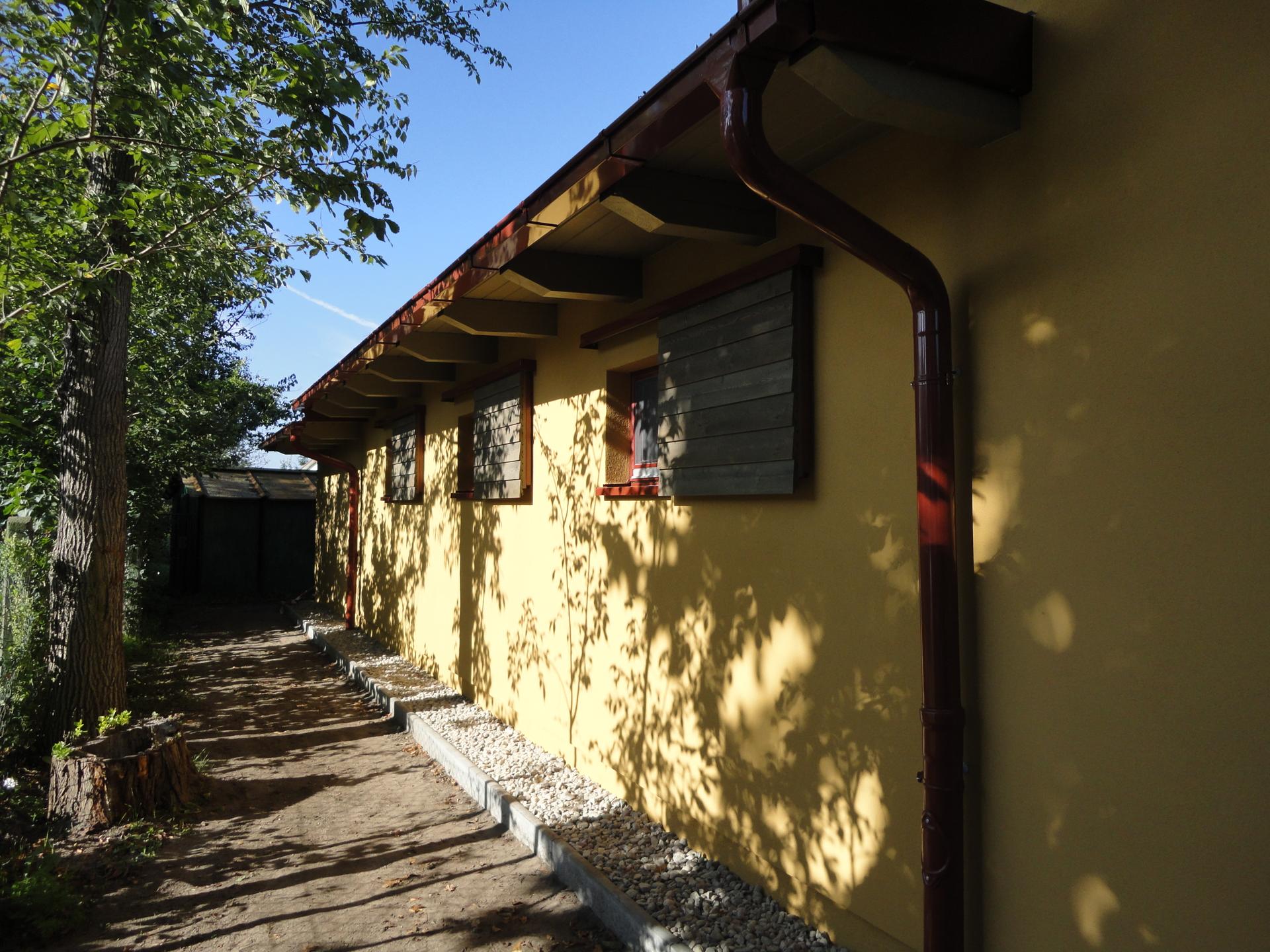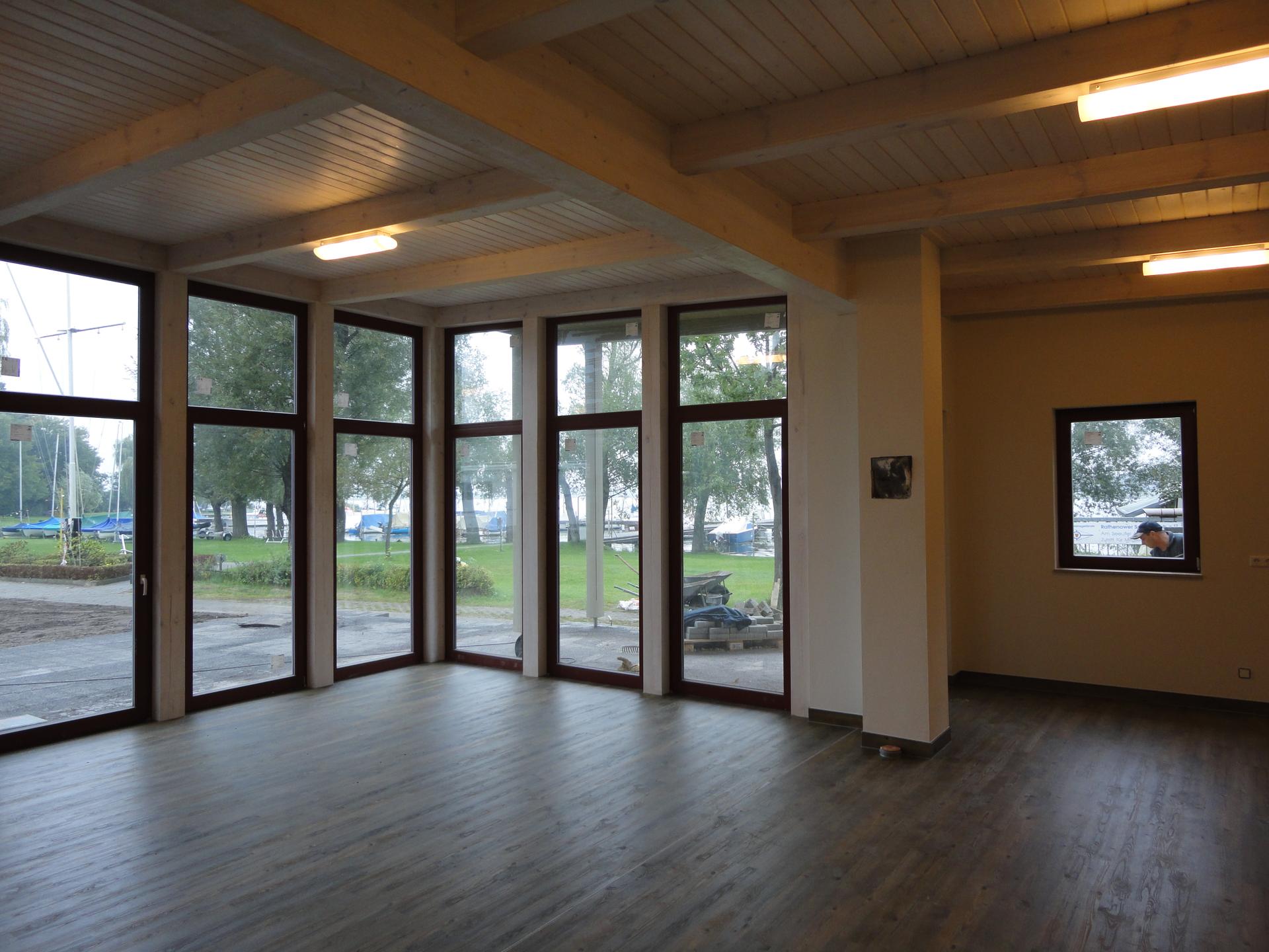 3-Teilung des Gebäudes in Vereinsraum, Sanitärtrakt und Geräteschuppen;