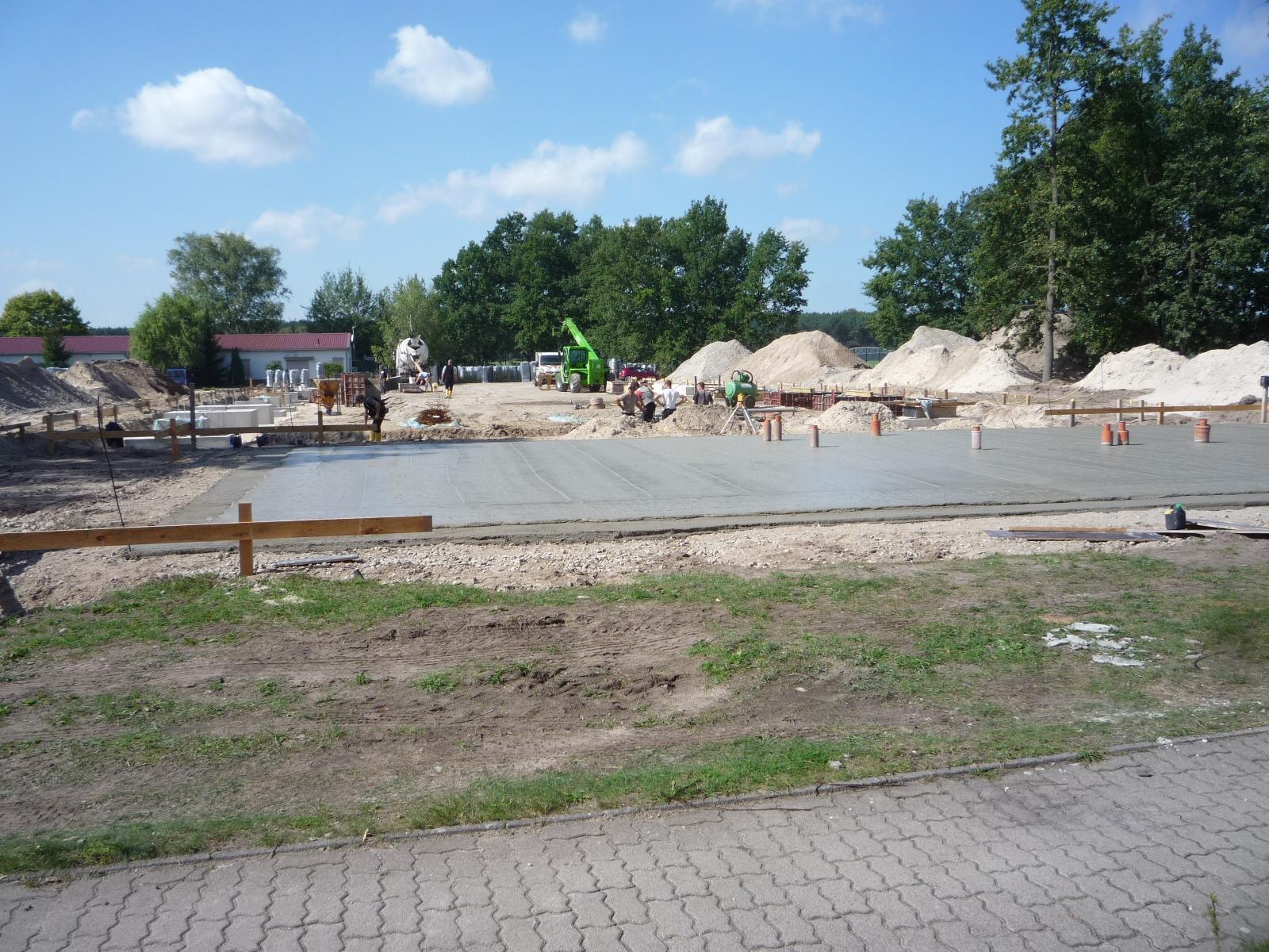 Oberflächenfertige Bodenplatte mit integrierter Industriefußbodenheizung und einer Stahlkonstruktion mit