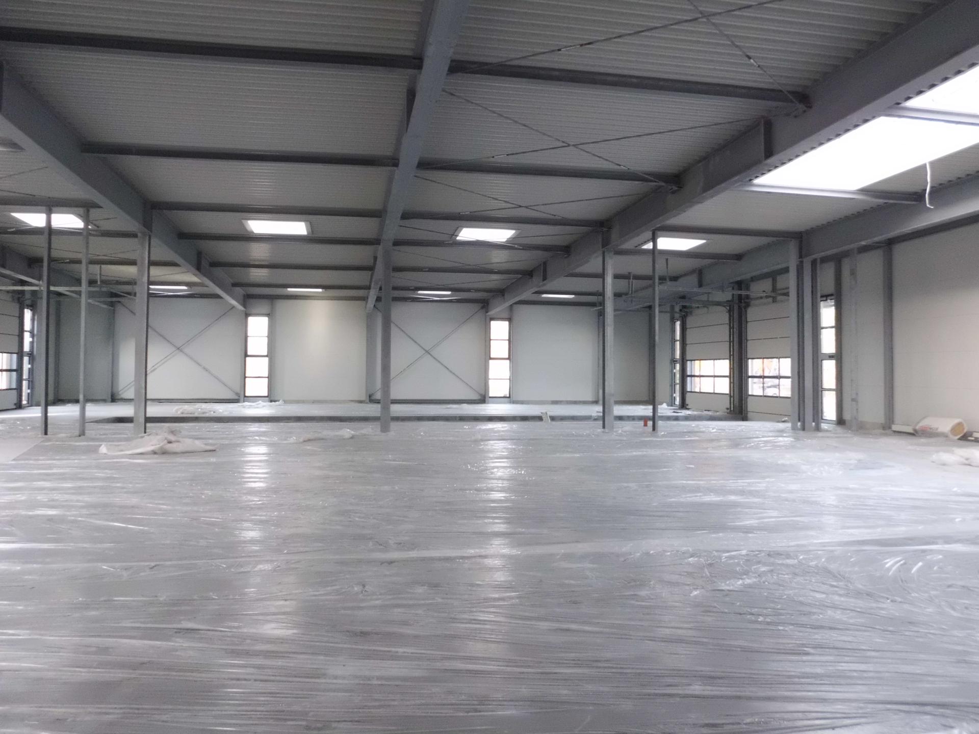 Produktion und Lager mit oberflächenfertiger Bodenplatte aus 20 cm Stahlfaserbeton mit Hartkornestrich