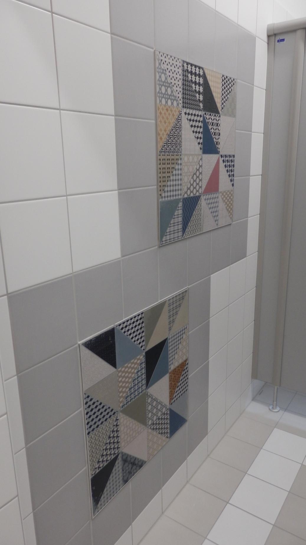 Zur Gestaltung der Fassaden wurde teilweise eine Vorhangfassade aus Trespaplatten montiert.