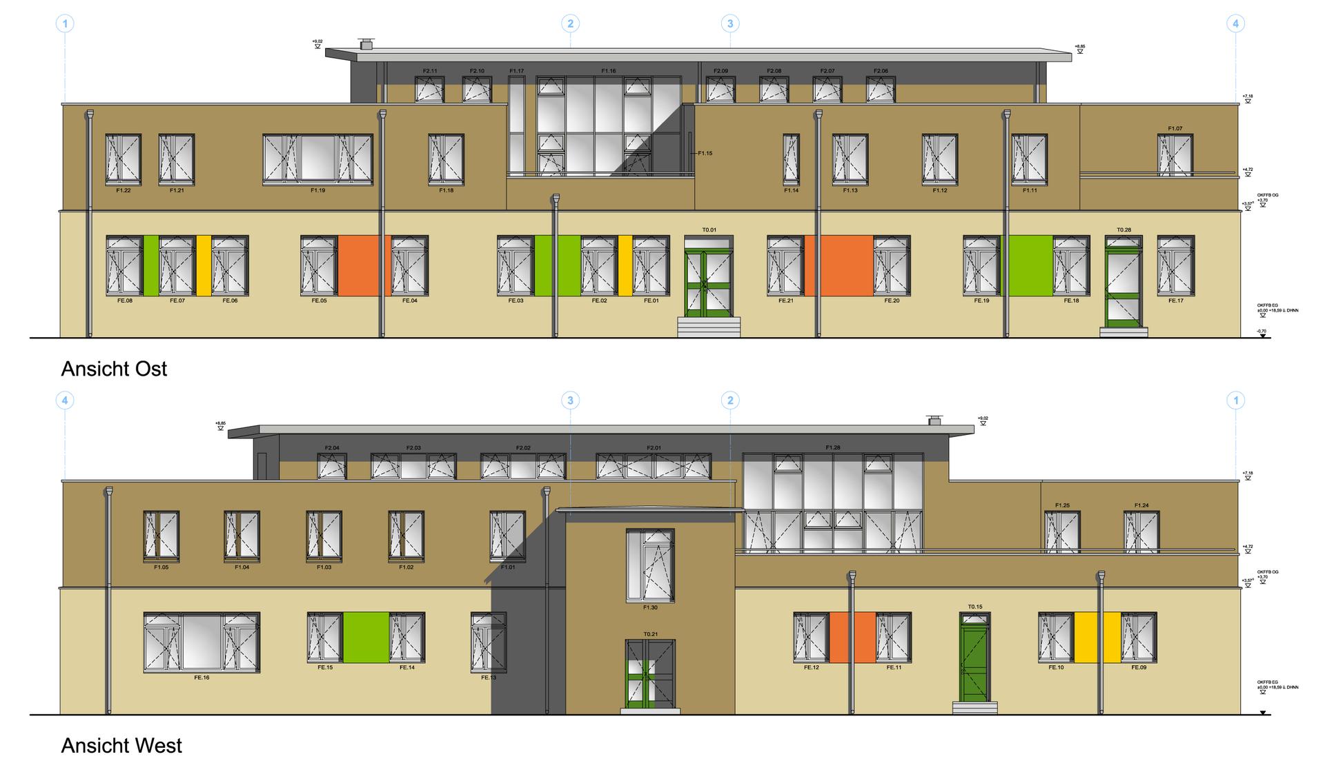 Sanierung und Umbau des ehemaligen Schulgebäudes zu einem Kinder- und Jugendheim mit zwei voneinander getrennten Wohngruppen, jeweils im Erdgeschoss und im Obergeschoss.
