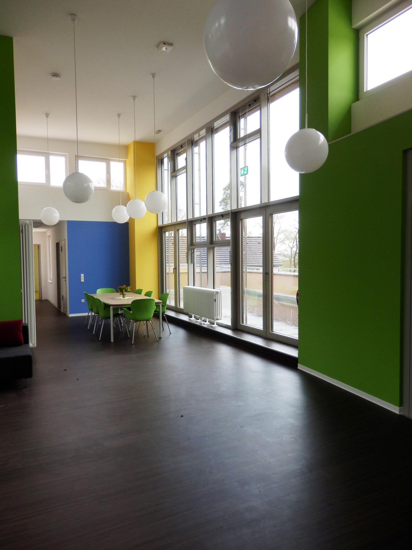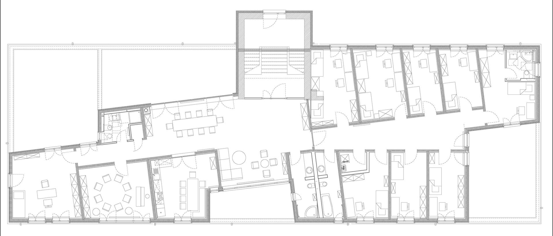 Getrennt von den Wohngruppen wird der südliche Bereich des Erdgeschosses zusätzlich zur Unterbringung der Verwaltung hergerichtet.