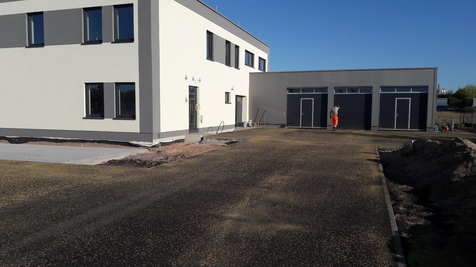 So entstehen neben den Büroräumen auch ein integriertes Labor, Umkleide- und Duschräume sowie eine Fahrzeughalle mit 3 Stellplätzen.