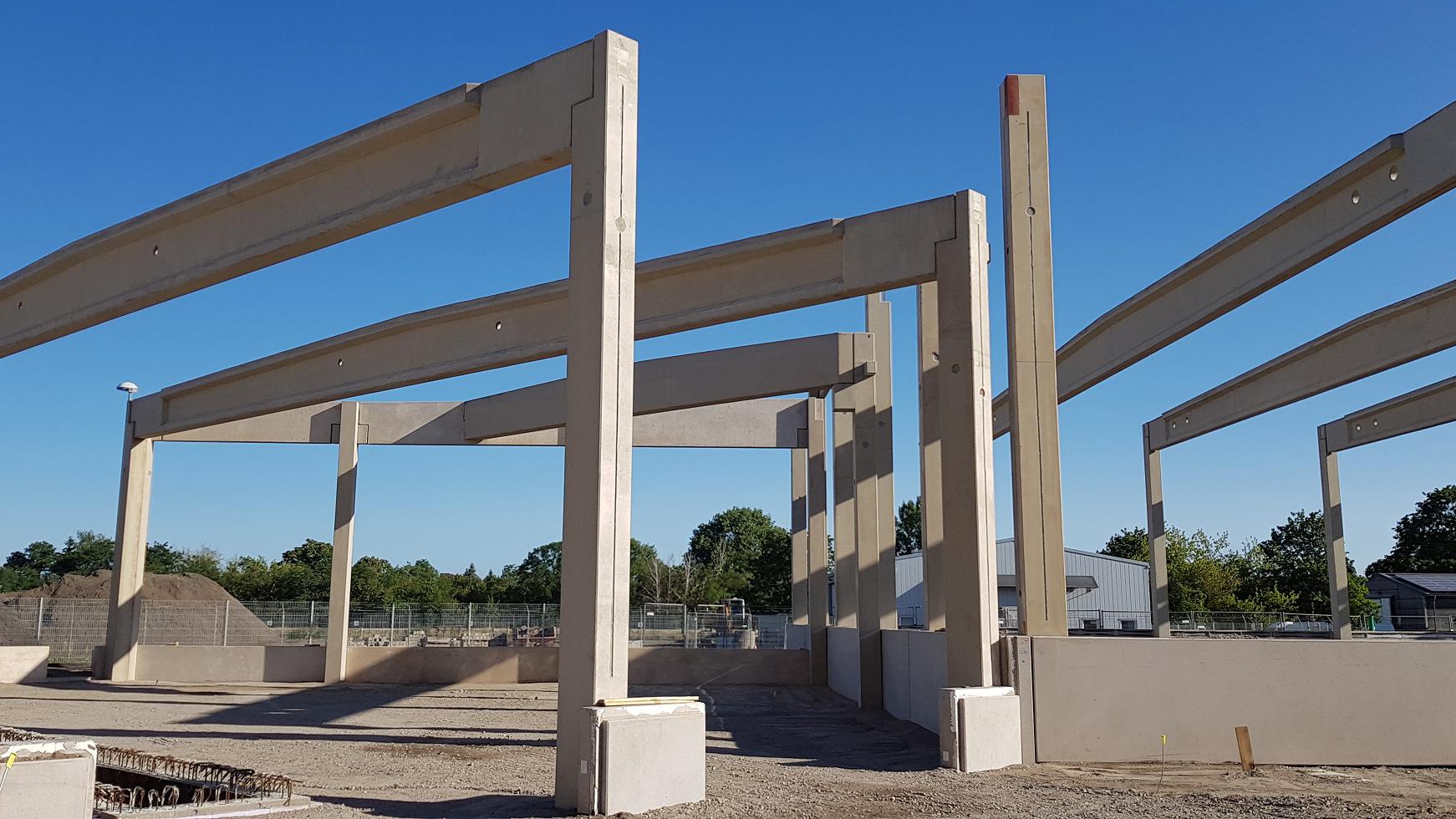 Die Wartungs- und Logistikhalle bestehen aus einer Stützen-Riegel-Spannbetonkonstruktion mit Porenbeton-Wandelementen. Die Wartungshalle sowie deren Grube werden über eine Betonkernaktivierung in der Bodenplatte temperiert.
