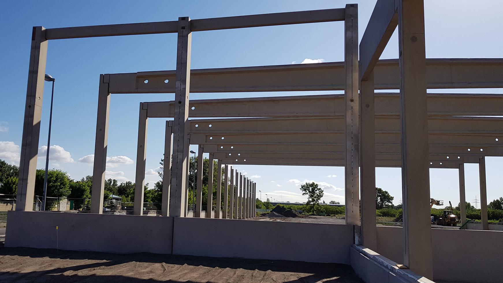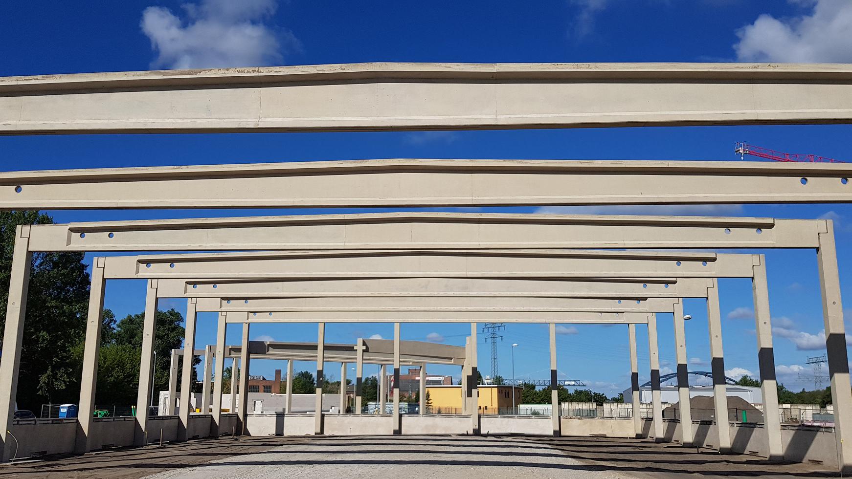 Neubau in zwei Bauabschnitten von 2x Logistikhalle, 2x Verwaltungsgebäude und einer Wartungshalle, Nettofläche: Lagerhallen insgesamt 6.040 m², Verwaltungsgebäude 399 m² und Wartungshalle 499 m², Lph. 1-8 Teil 3 der HOAI Objektplanung und Lph. 1-6 Teil 4 der HOAI Tragwerksplanung
