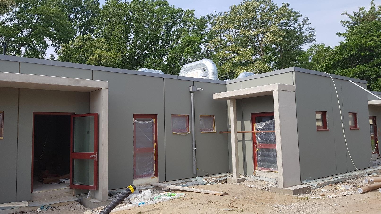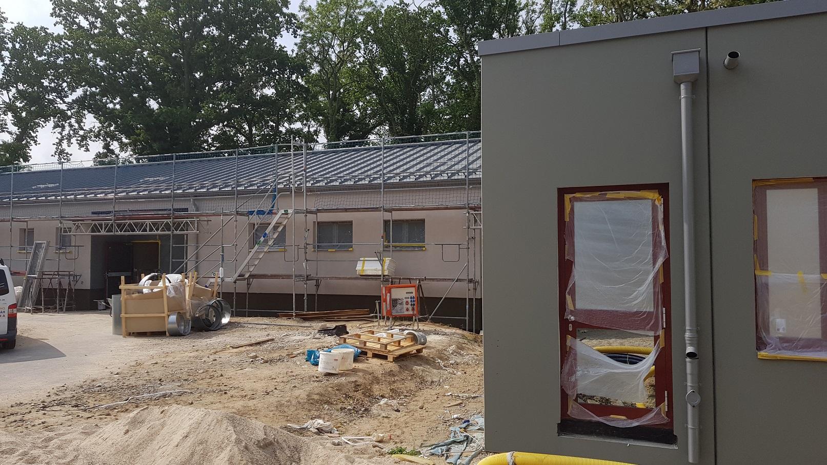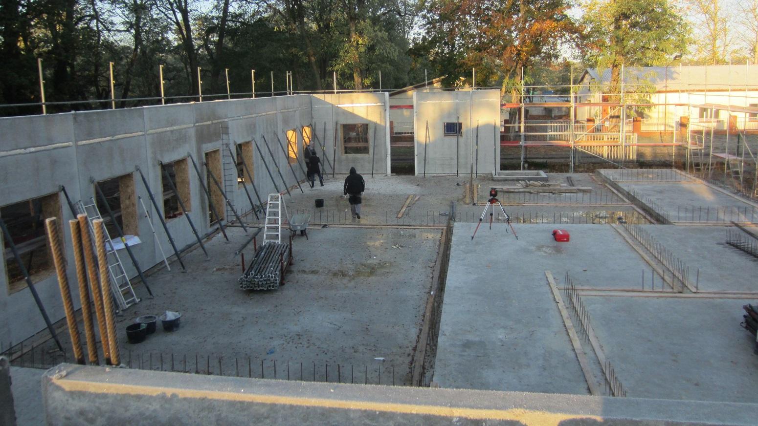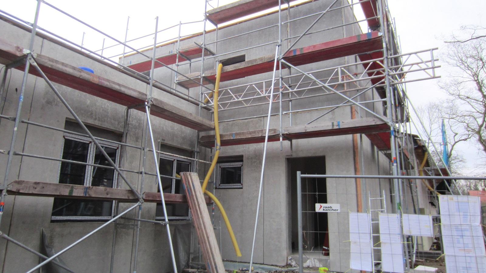 Die Umfassungswände des Ausbildungs- und Schulungsbereiches werden Mauerwerkswände mit Wärmedämmung.
