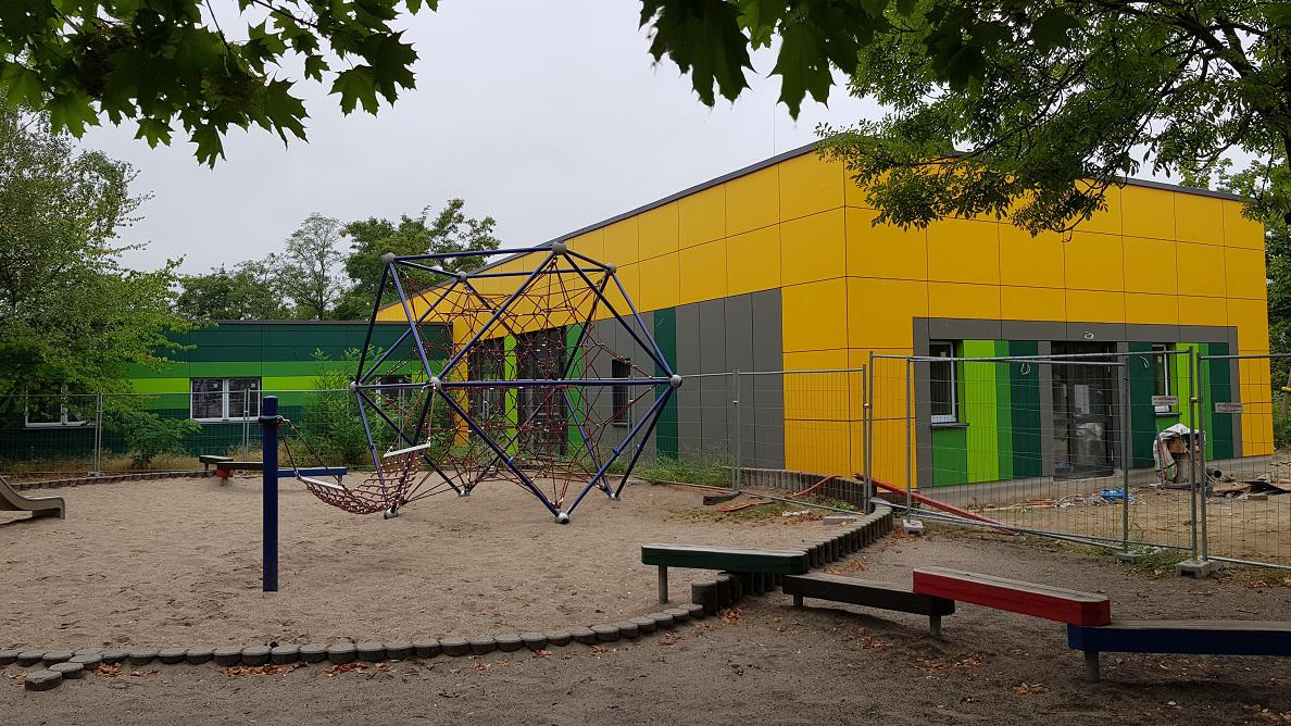 Gerade durch den angrenzenden Spielplatzbereich würden so die gedämmten Fassadenflächen vor Ballwürfen oder auch einmal herumtollende Kinder, welche sich gegen die Fassade abdrücken, geschützt und den Anforderungen eines Schulbetriebes gerecht werden.