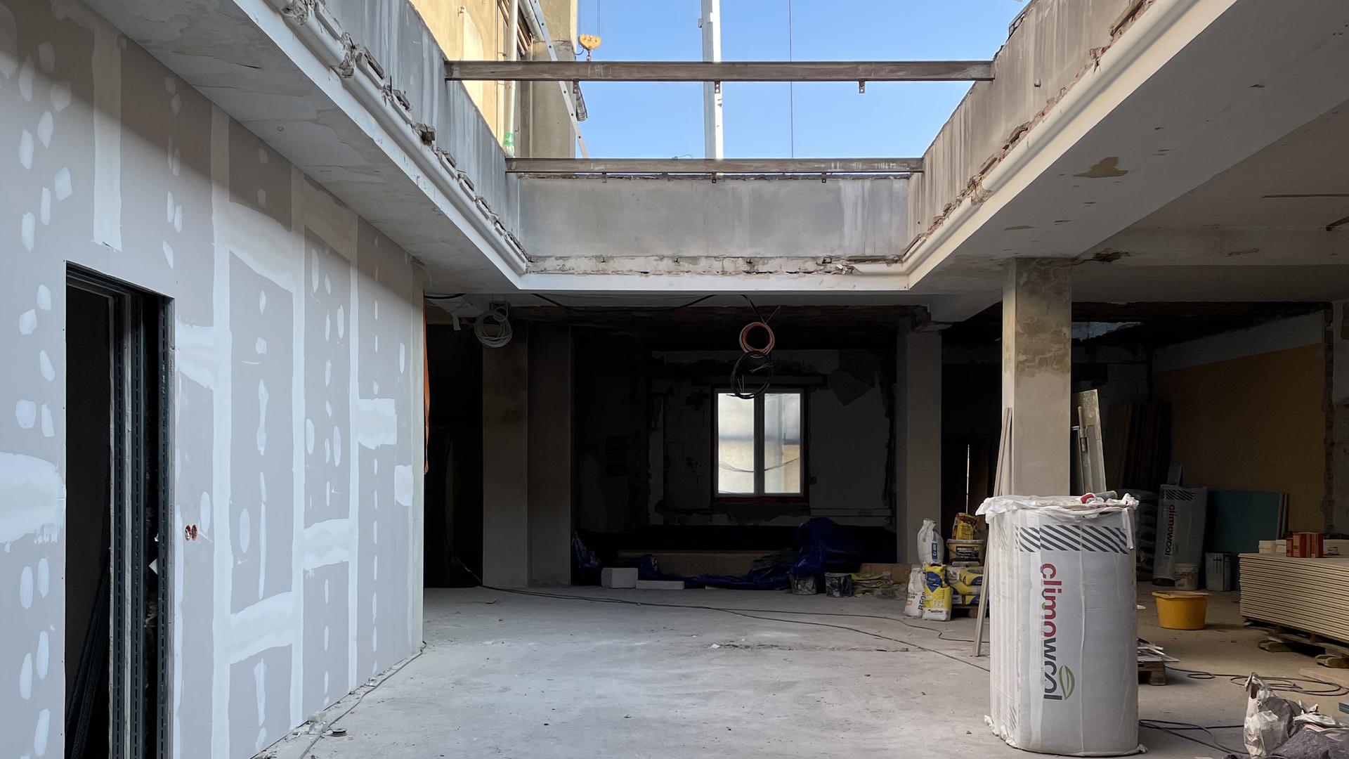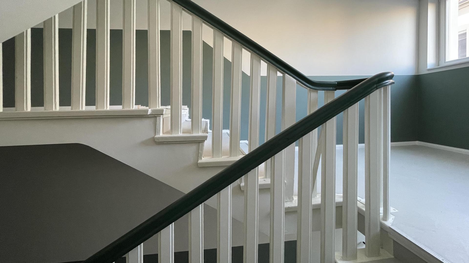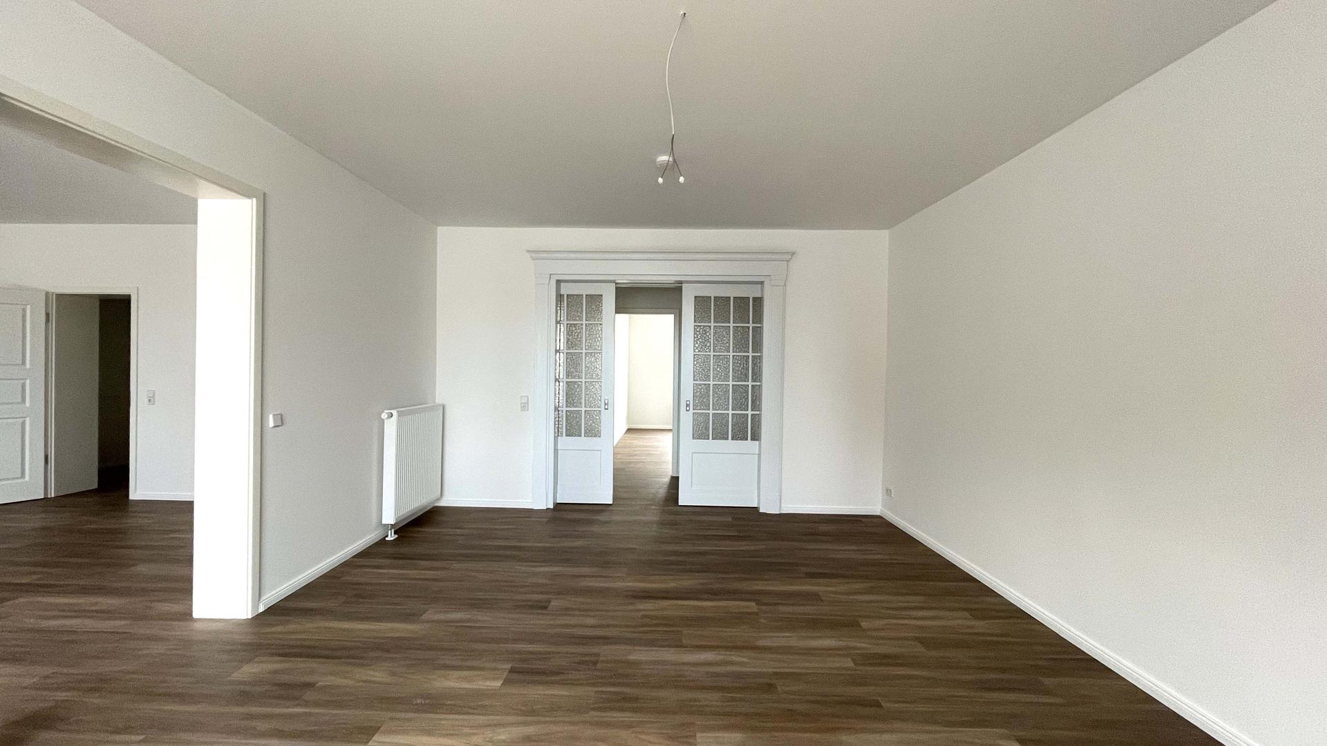 Die Nutzungsänderung von Büro- in Wohnräume des 1. Obergeschosses schließt die Sanierung der Räume ein und wird unter vermieteten und genutzten Zustands des Erdgeschosses mit zwei Geschäften durchgeführt. Es entstehen 4 Wohneinheiten mit 98 bis 135 m² Wohnfläche.