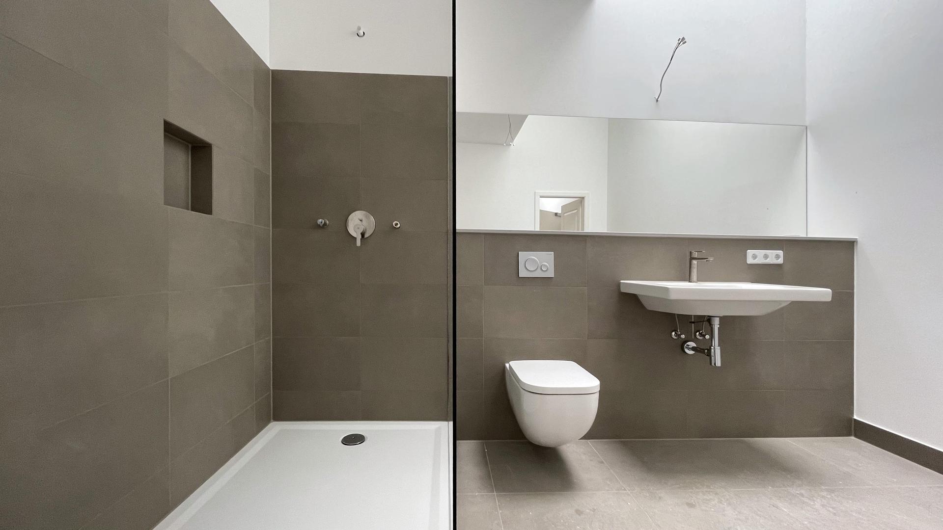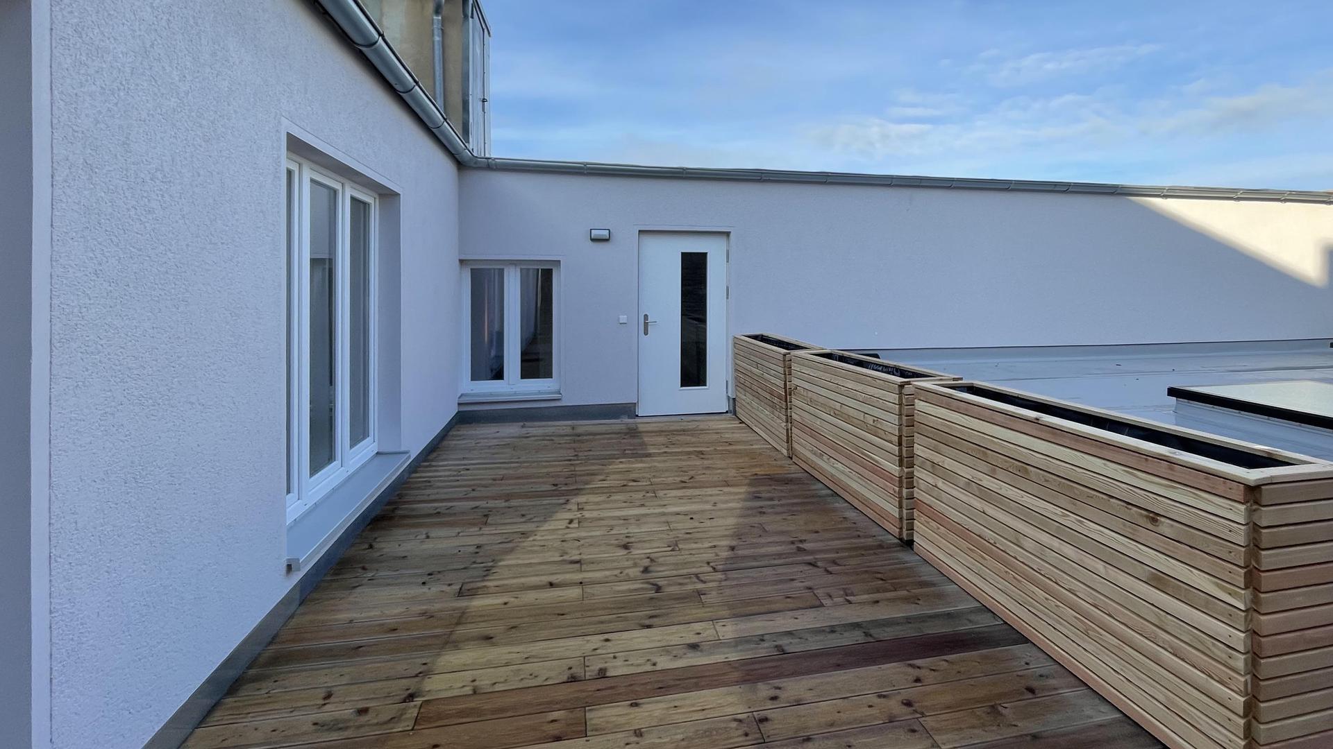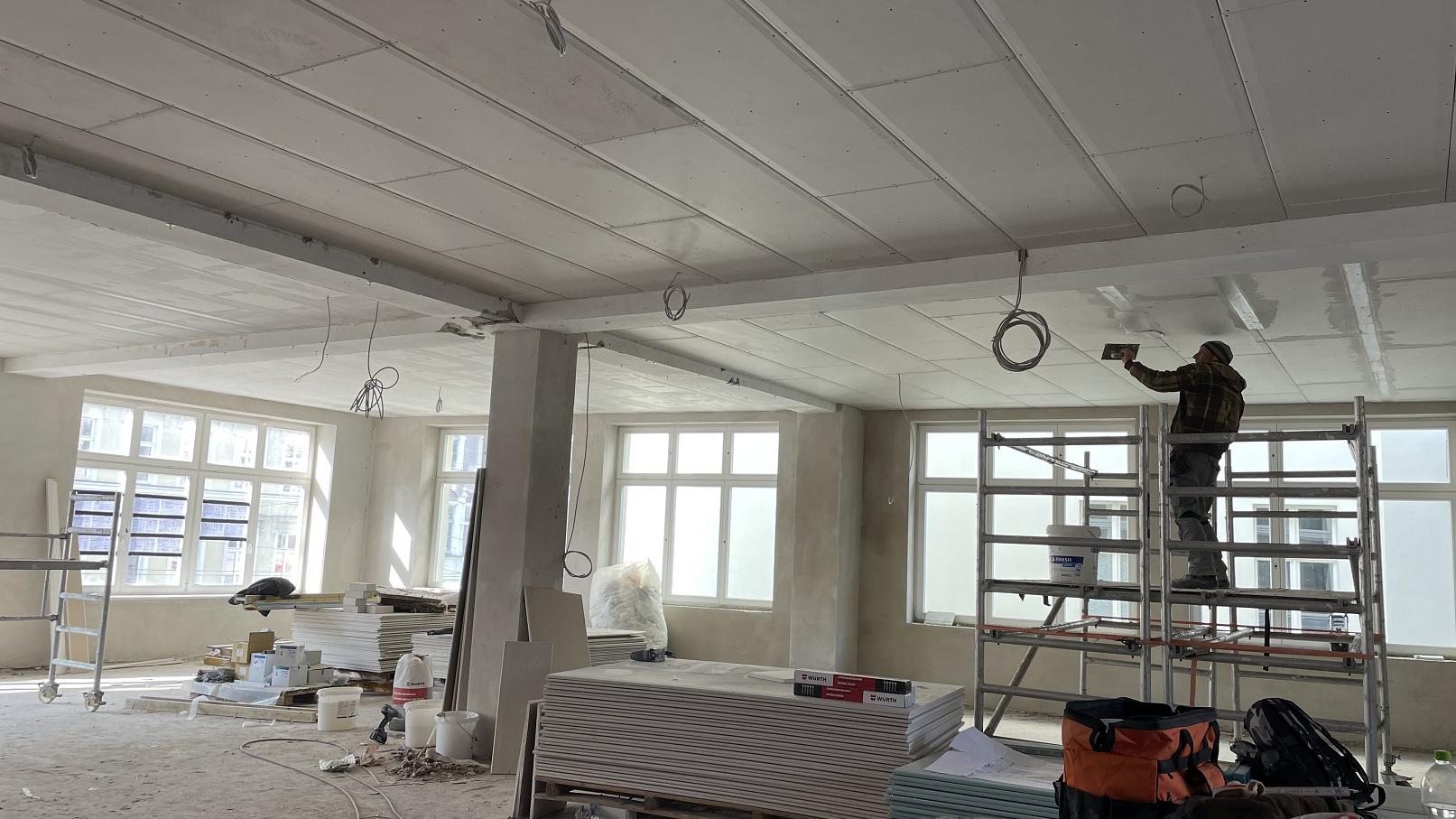 Die Nutzungsänderung von Büro- in Wohnräume des 1. Obergeschosses schließt die Sanierung der Räume ein und wird unter vermieteten und genutzten Zustands des Erdgeschosses mit zwei Geschäften durchgeführt. Es entstehen 4 Wohneinheiten mit 98 bis 135 m² Wohnfläche.