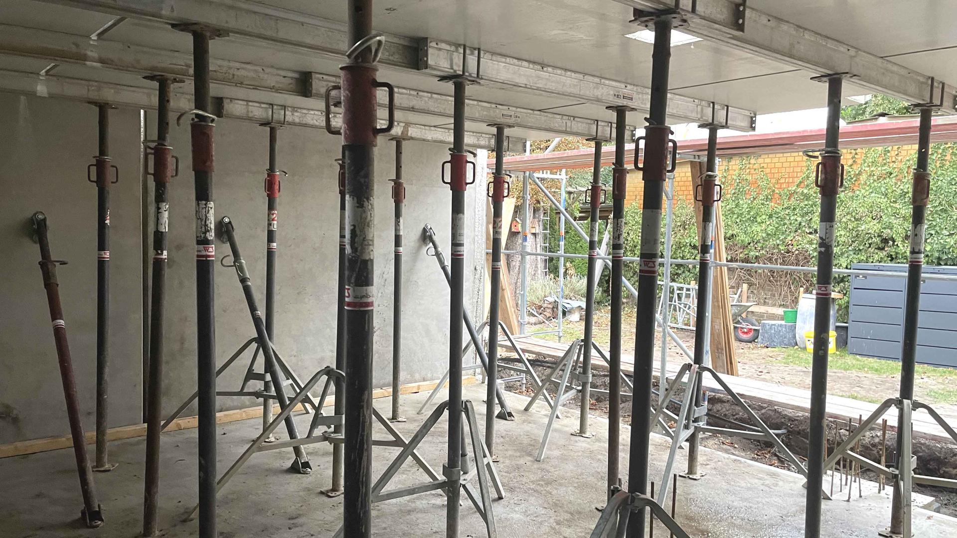 Die Garagenwände wurden aus Stahlbeton-Halbfertigteilwänden und Filligrandecken hergestellt.