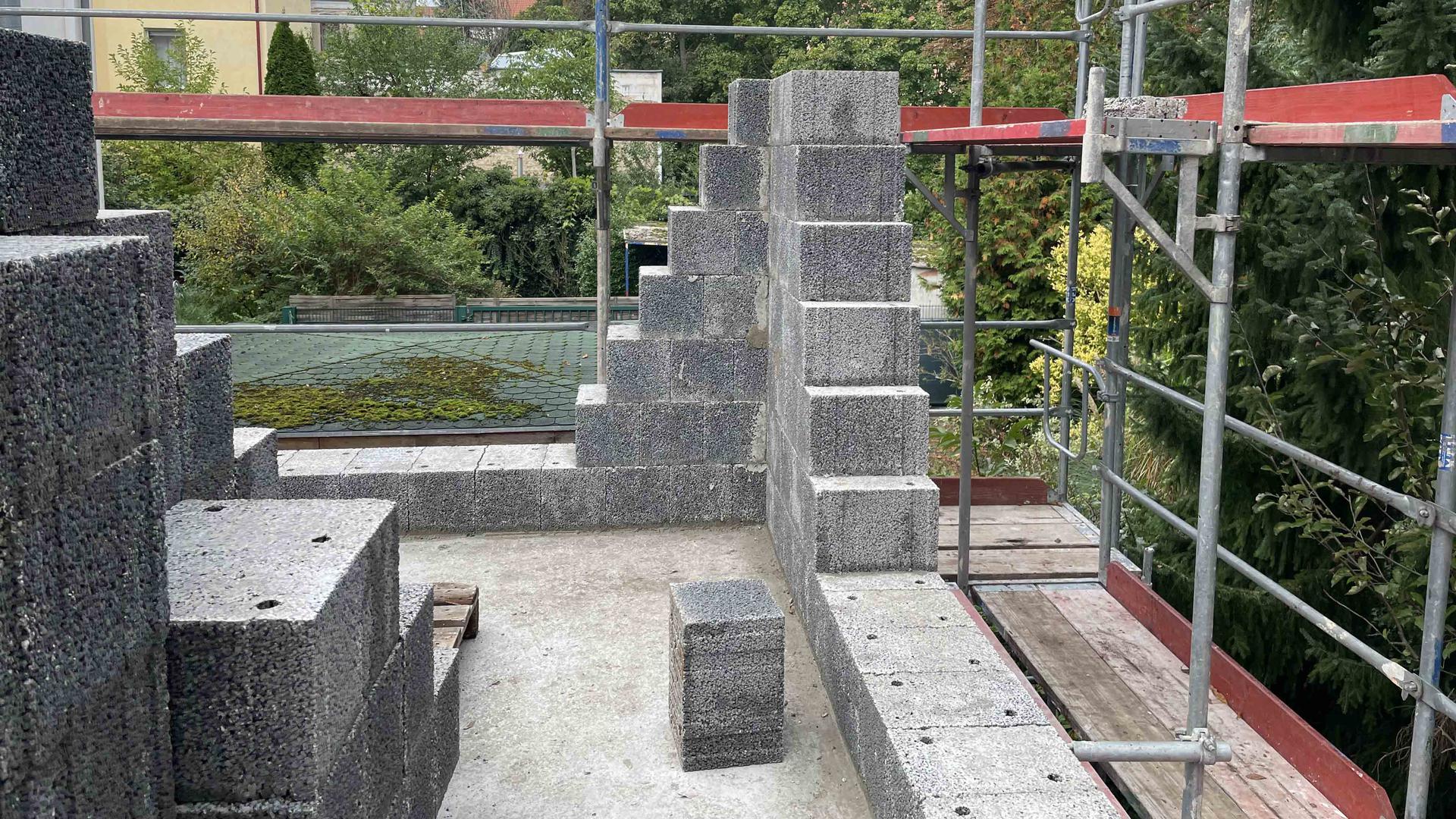 Das einschalige Mauerwerk in Hochparterre und Obergeschoss wurde mittels Klimaleichtblöcken (KLB) hergestellt.